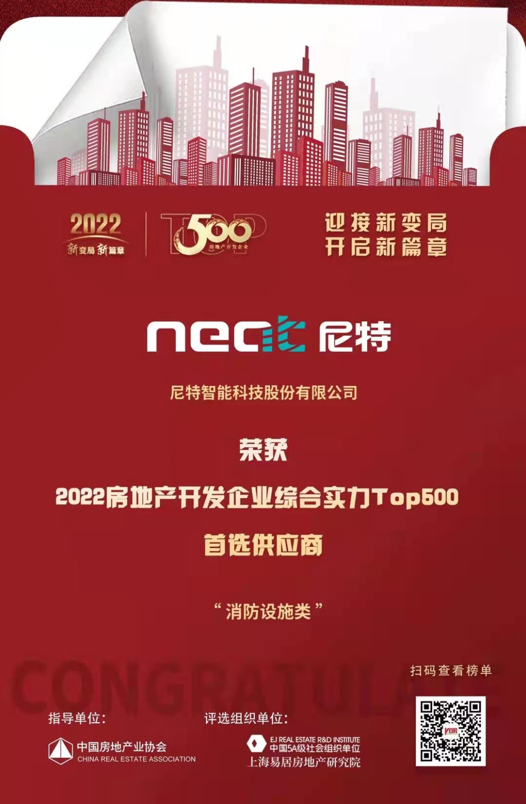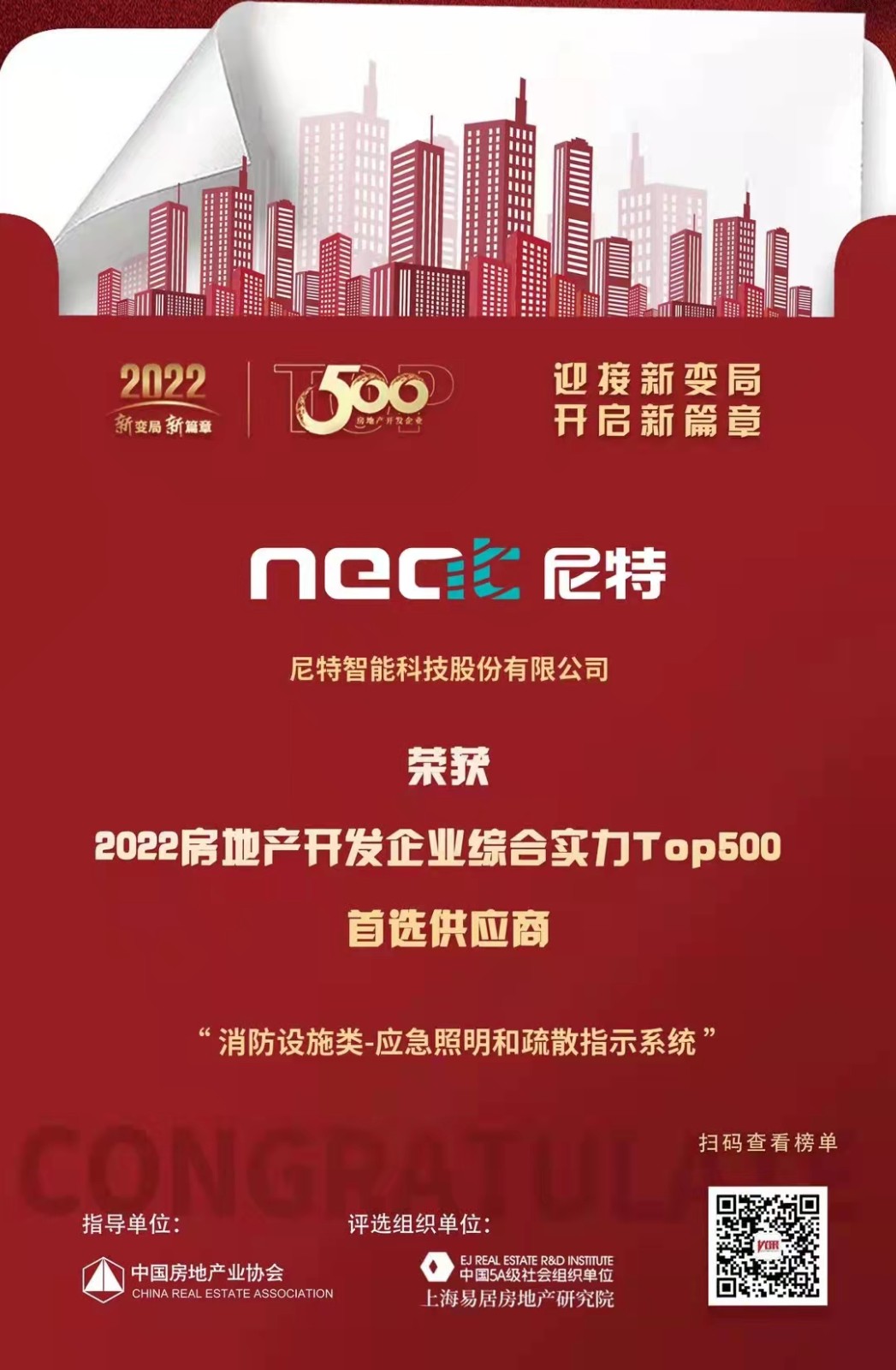 恭喜尼特連續(xù)五年獲評(píng)500強(qiáng)地產(chǎn)首選供應(yīng)商殊榮!!智能疏散品類(lèi)位列榜首?。。?